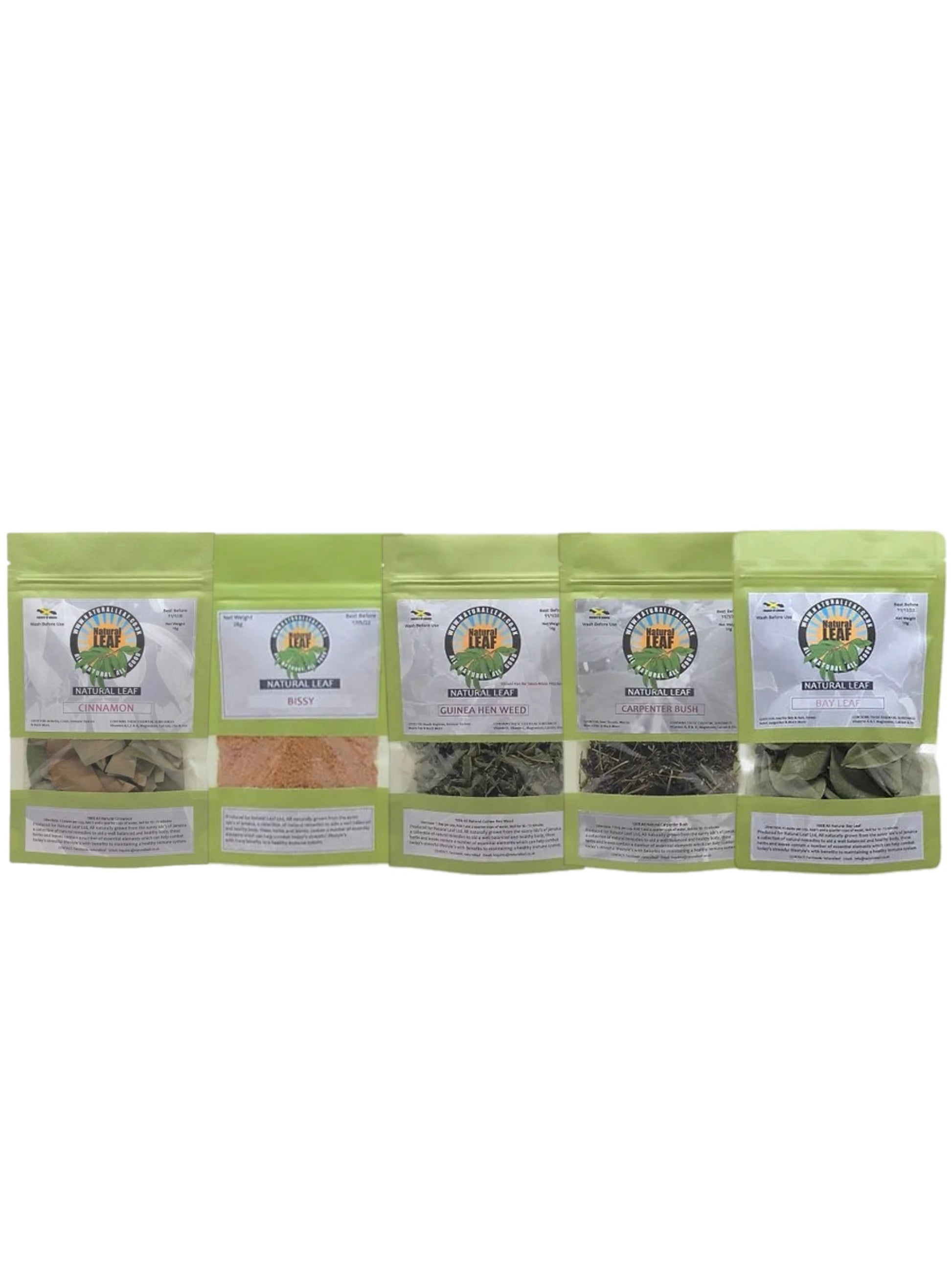 Experience the rich flavors and natural wellness of the Caribbean with our Caribbean Herbal Tea Pack — a carefully crafted blend of Bay Leaf, Cinnamon Leaf, Carpenter Bush, Guinea Hen Weed, and Bissy. Each herb brings unique benefits to support your body and mind.